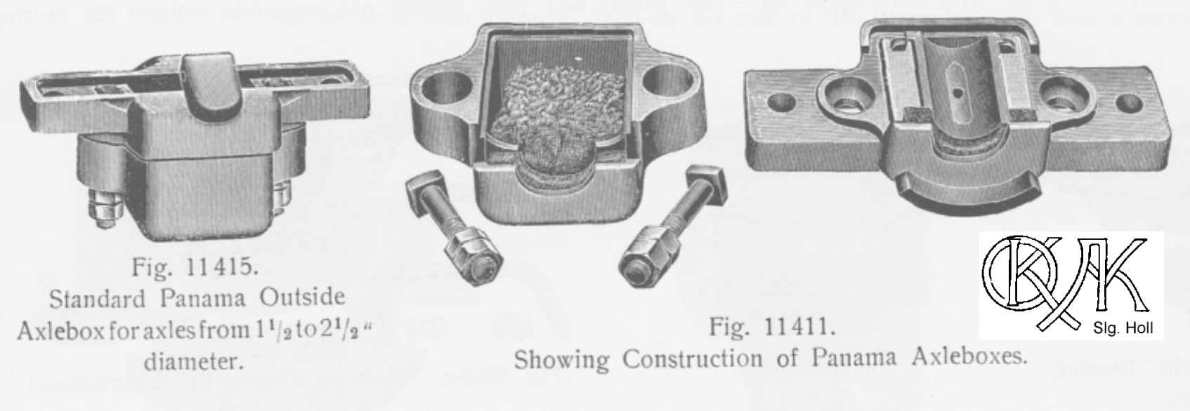 Gegossenene Achslagergehäuse finden sich bereits unter Decauville-Loren aus den späten 1880er Jahren. Im unteren Teil befindet sich ein Schwamm, der mit Öl getränkt wird. Im oberen Teil befindet sich eine Lagerschale, die bei Verschleiß erneuert werden kann, und die Einfüllöffnung für das Schmieröl. Charakteristisch für das Panama-Achslager sind die Konsolen am Oberteil, an denen das Achslager mit dem Rahmen verschraubt werden kann.